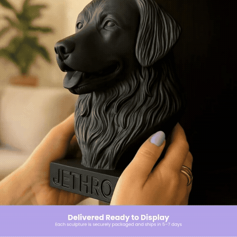 Once you place your order, we create a 3D bust of your pet based on the photos you upload. You can choose the size and add a name. Each bust is made with care and shipped within 7–10 business days.